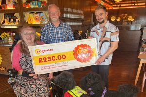 The latest recipient of a giant £250.00 Brightside voucher is Dog A.I.D – a national charity with strong ties to Brightside Exeter, working with physically disabled people and coaching them to train their own pet dog to become an assistance dog.